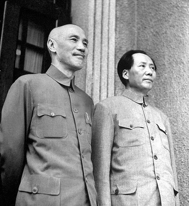 장제스(왼쪽)와 마오쩌둥. (출처: 傑克 威克爾斯, 1945, Public domain, via Wikimedia Commons) |