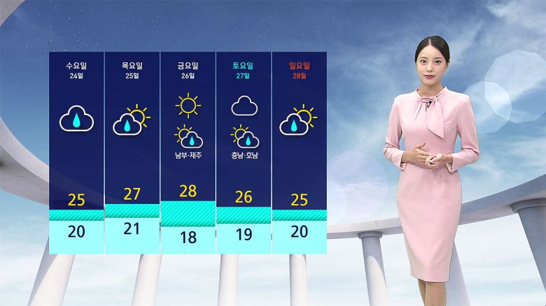 비는 모레 오전 중부부터 그치기 시작해 금요일과 토요일에는 남부를 중심으로 비가 자주 내리겠고요.