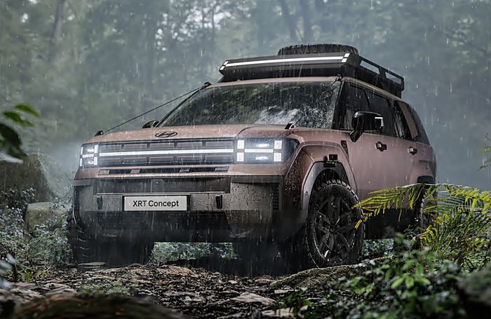 싼타페 XRT 콘셉트는 싼타페를 기반으로 루프 랙 위 화물 캐리어, 테일게이트에 부착한 사다리와 카고 박스 등 아웃도어 라이프 스타일에 최적화되도록 디자인해 호평받았다.