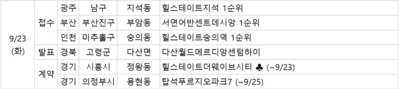 또 경북 고령군 '다산월드메르디앙센텀하이'는 이날 당첨자를 발표한다.