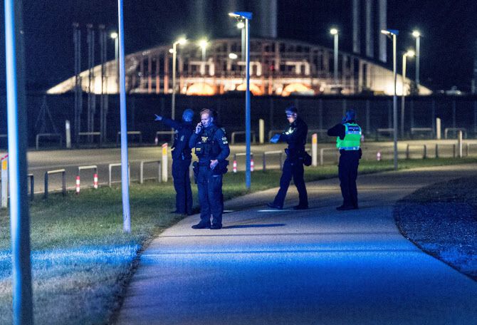22일(현지시간) 덴마크 코펜하겐에서 드론 신고로 인해 코펜하겐 공항에서 모든 교통이 폐쇄된 후 경찰관들이 걷고 있다.(서진=로이터)