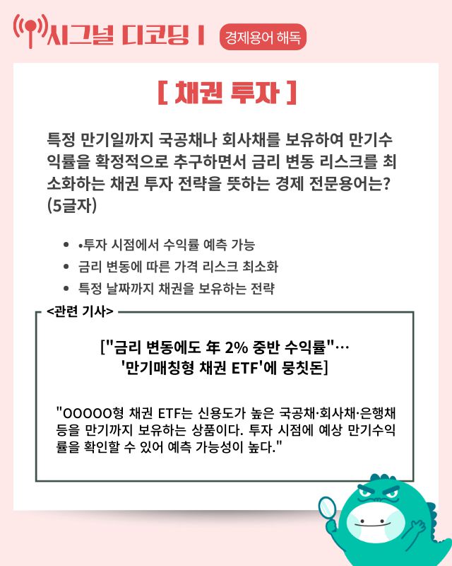 ? 채권 ETF 자산 배분: 만기매칭형 ETF 통한 연 2.5~2.7% 고금리 확정과 금리 하락 시세차익 전략 활용