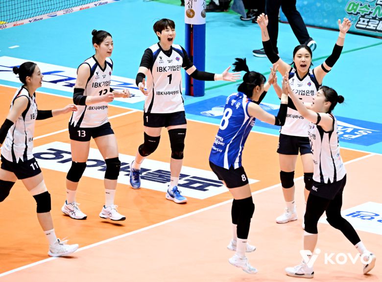 IBK기업은행은 22일 여수 진남체육관에서 열린 2025 여수·NH농협컵 프로배구대회 여자부 B조 조별리그 1차전에서 정관장에 세트스코어 3-1(16-25 25-20 25-22 25-20) 역전승을 낚았다.