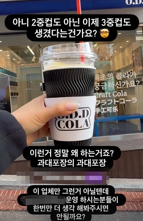 지난 22일 줄리안은 자신의 계정을 통해 "아니 2중컵도 아닌 이제 3중컵도 생겼다는 건가요? 이런거 정말 왜 하는거죠? 과대포장의 과대포장"이라는 글을 게재했다.