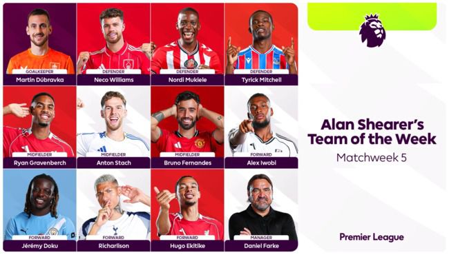 무려 7회의 선방을 보여주며 번리의 노팅엄 포레스트전 무승부를 이끈 마르틴 두브라브카 골키퍼가 포함됐고 이외에 니코 윌리엄스(노팅엄), 노르디 무키엘레(선덜랜드), 타이릭 미첼(크리스탈 팰리스)가 선정됐다. 골을 터뜨리며 리버풀의 승리를 이끈 라이언 흐라벤베르흐와 위고 에키티케, 첼시전 선제골 브루노 페르난데스(맨체스터 유나이티드), 제레미 도쿠(맨체스터 시티) 등도 있었다.