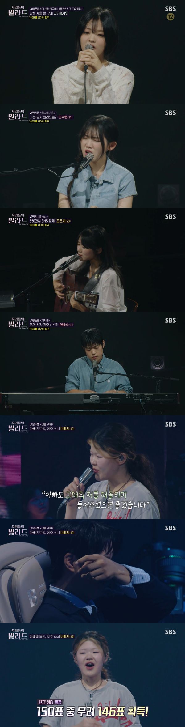 23일 첫 방송된 SBS '우리들의 발라드'에는 본선 1라운드 무대들이 공개됐다.