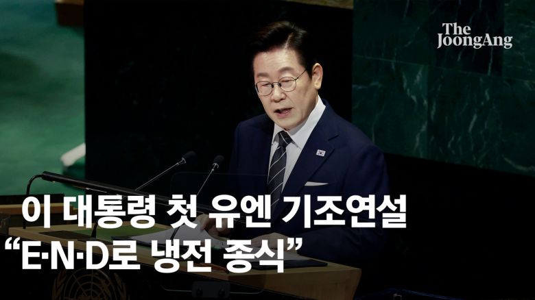 이재명 대통령이 23일(현지시간) 오후 미국 뉴욕 유엔본부에서 취임 후 첫 기조연설을 마쳤다. 사실상 이 대통령의 다자외교 무대 데뷔전인 이날 연설에선 모두 세 차례 박수 소리가 나왔다.