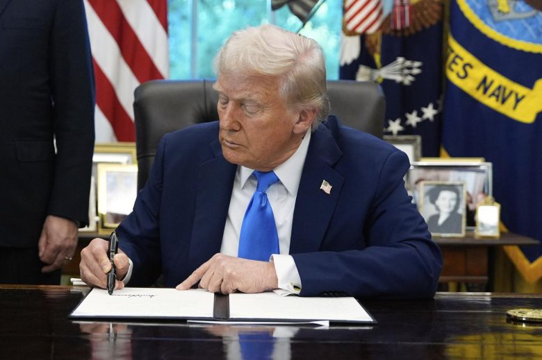 도널드 트럼프 미국 대통령이 19일(현지 시간) 백악관 집무실에서 골드 카드 관련 행정명령에 서명하고 있다. 2025.09.20 워싱턴=AP/뉴시스 |