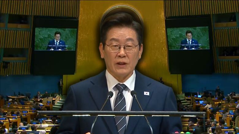 미국 뉴욕에서 열린 제80차 UN총회에서 이 대통령은 일곱 번째로 기조연설에 나섰습니다.