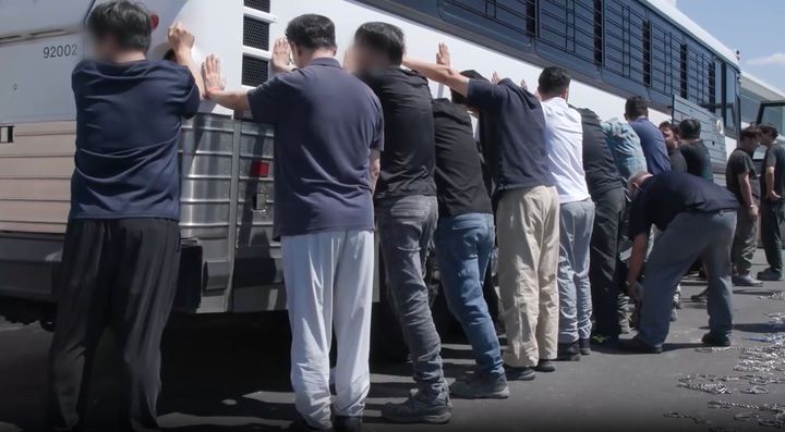 [서울=뉴시스] = 지난 4일(현지 시간) 미국 이민 단속 당국이 홈페이지를 통해 공개한 조지아주 현대차그룹-LG에너지솔루션의 합작 배터리 공장 건설현장 불법체류·고용 단속 현장 모습. (사진= ICE 홈페이지 영상 갈무리) *재판매 및 DB 금지