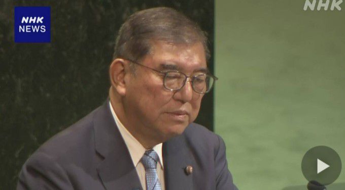 유엔 총회서 연설하는 이시바 시게루 일본 총리 [사진=NHK] |