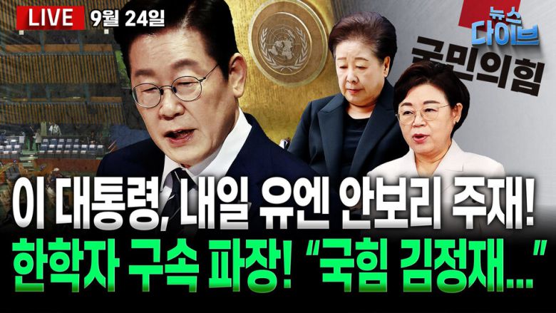 출연: 장윤선 정치전문기자, 묘장군 김묘성 기자, 김정환 변호사, 김규현 변호사, 김남일 한겨레 정치팀 기자, 진행: 고현준. 이 대통령, 내일 유엔 안보리 주재 / 재판 불출석 윤석열, 보석 심사는 출석... ‘피고인석’ 김건희 공개 / 조희대 청문회 불출석? “삼권분립 망친 조희대” 민주당 맹공 / 통일교, “국힘 김정재에 후원금 전달”...한학자 구속 후폭풍! / ‘띠지 분실’ 보고 누락! “경찰이면 파면 사유”... 파장 계속 / ‘특검 출신’ 한동훈, 내란 특검 증인신문 요구에 "보수 분열 의도" 오늘 (9월 24일) 뉴스 다이브 많은 시청바랍니다. 제작: 뉴스영상부
