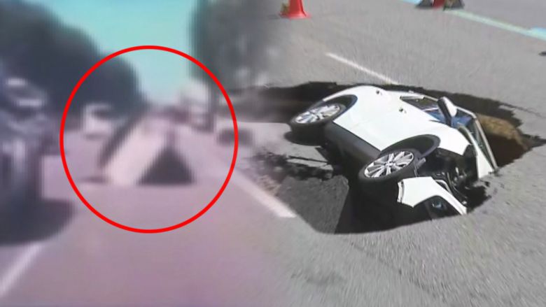 갑자기 도로 한가운데 큰 구멍이 뚫립니다.