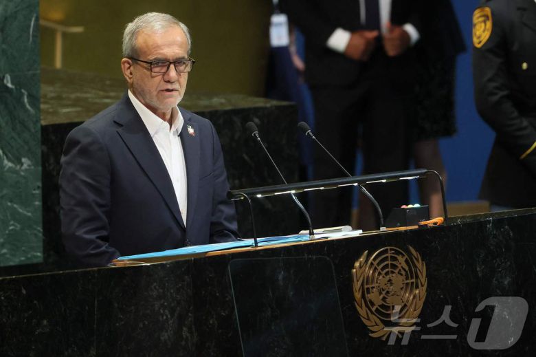 (서울=뉴스1) 신기림 기자 = 마수드 페제시키안 이란 대통령은 24일(현지시간) 유엔총회 연설에서 "이란은 핵무기를 개발한 적도 없고, 앞으로도 그럴 의도가 없다"고 공식 선언했다.