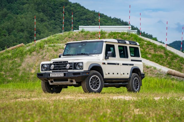 영국 이네오스 오토모티브의 ‘1호 양산 모델’인 그레나디어는 각 잡힌 군용차를 떠올리게 한다. 웅장한 몸집과 박스형 디자인, 후면부 스페어 타이어 등을 갖춘 외관 디자인을 보면 도심 속 아스팔트 도로보다는 험준한 산길·사막과 같은 오프로드에 제격인 차량이라는 강한 인상을 남긴다.