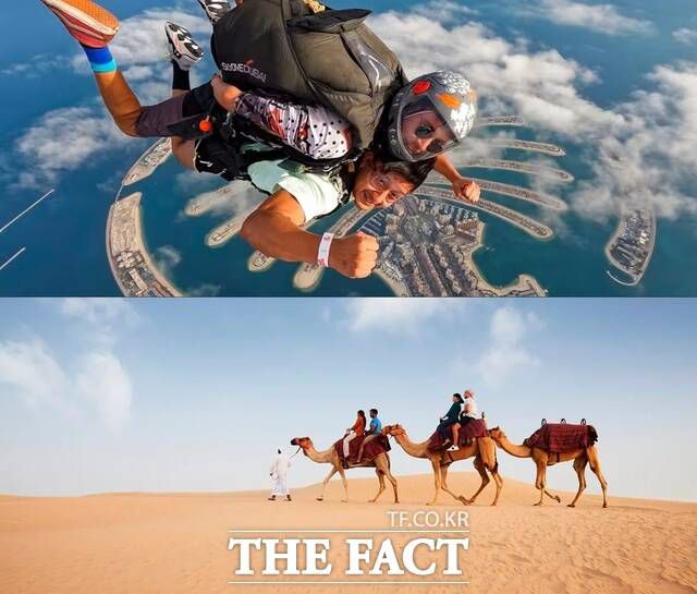 두바이 인근 아라비아 사막에서 사파리를 비롯한 쿼드바이크, 샌드보드 등 다양한 액티비티를 즐길 수 있고, 스카이다이빙은 스포츠 관광을 즐기는 방문객들의 필수 액티비티로 창공에서 팜 주메이라와 사막 모래언덕을 내려다보며 다이빙하는 놀라운 체험을 제공한다. /두바이관광청 |