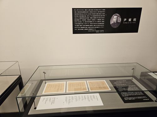 릿쿄대 전시관엣 설치된 윤동주의 작품 |