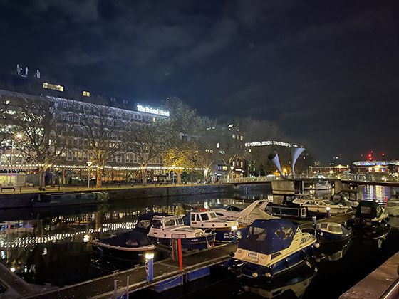 브리스톨 시내 중심 워터프런트 지역에 위치한 4성급 더브리스톨호텔(The Bristol Hotel)과 에이번 강(Avon River) 야간 전경