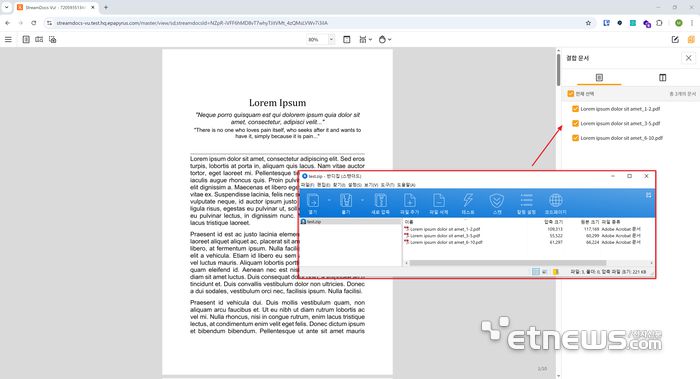 이를 통해 PDF, 이미지 파일, 한글 및 MS오피스 문서 등 '스트림닥스 뷰!'가 지원하는 모든 포맷 문서를 압축 파일 상태로 웹에서 바로 볼 수 있게 됐다. 하나의 압축 파일에 포함된 문서들은 원본 포맷에 상관 없이 하나의 문서처럼 이어서 볼 수 있어 더욱 편리하다. 여기에 공공기관 및 기업에서 자주 사용하는 전자결재 문서 포맷인 HWX 파일 바로보기 기능도 추가되어 기관 내 결재 문서를 외부에 간편하게 공유할 수 있게 됐다.