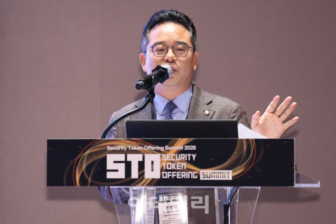 [이데일리 이영훈 기자] 민병덕 더불어민주당 의원이 25일 서울 여의도 한국거래소에서 열린 STO 써밋 2025(SECURITY TOKEN OFFERING SUMMIT 2025)에서 ‘디지털자산에서 찾는 성장동력’ 주제로 발표를 하고 있다. |