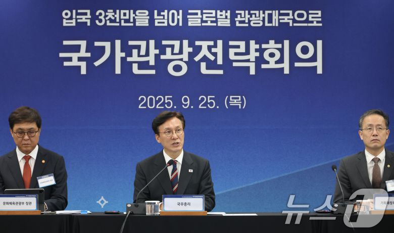 김민석 국무총리가 25일 서울 중구 한국관광공사 서울센터에서 열린 국가관광전략회의에 참석해 발언하고 있다. 2025.9.25/뉴스1 ⓒ News1 청사사진기자단 |