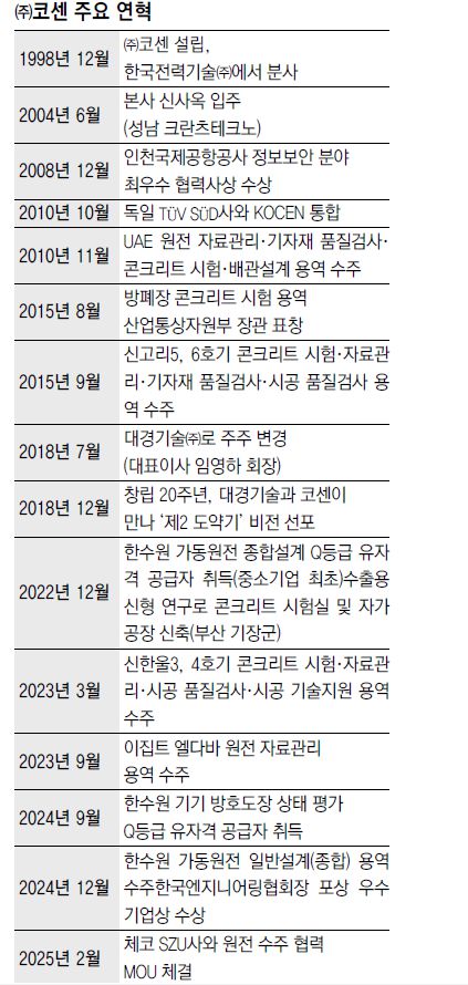 바로 ㈜코센(DK KOCEN)이다. 1998년 공기업 분사 정책의 일환으로 한국전력기술에서 분사한 이후 27년간 국내외 원전 시장에서 쌓아온 코센의 성장 여정은 한국이 원전 강국으로 도약하는 역사와 맥을 같이한다.