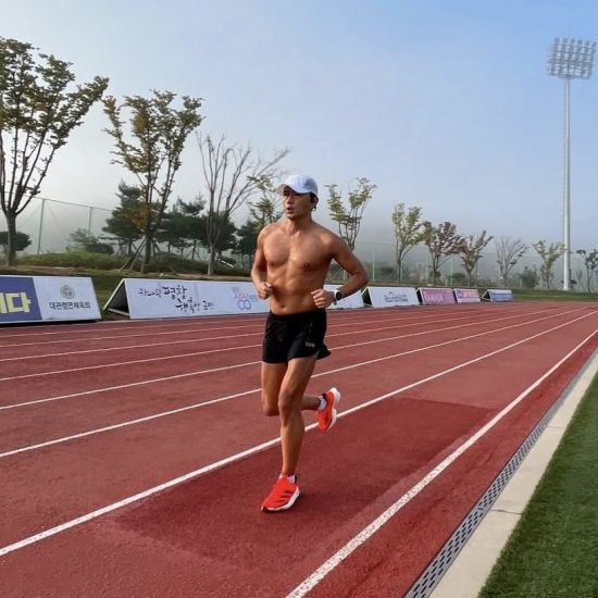배우 진태현이 상의 탈의한 채 달리고 있다. 인스타그램 |