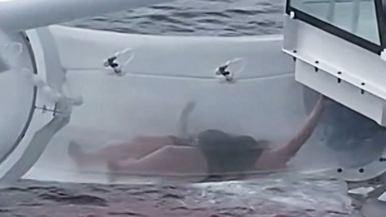 원래 약 50미터 높이에서 물살의 힘으로 미끄럼틀 아래를 향해 내려가야 하지만 갑자기 안에 갇히면서 옴짝달싹 못하게 된 겁니다.