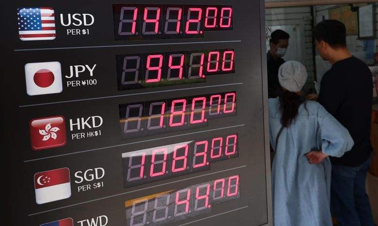 미국 경제지표 호조로 달러가 강세를 나타내면서 원·달러 환율이 넉 달 만에 장중 1410원대를 돌파한 26일 서울 시내의 환전소에 전광판에 환율이 나오고 있다. 2025.9.26. 뉴스1 |