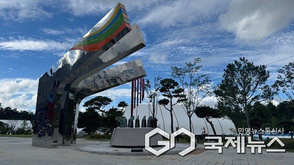 (영동=국제뉴스) 이재기 기자 = 충북 영동세계국악엑스포조직위(이하 조직위)는 영동세계국악엑스포(이하 국악엑스포) 개막과 함께 행사장 내에 설치된 상징 조형물 '전통의 울림, 미래를 울리다'의 제막식을 26일 개최했다.