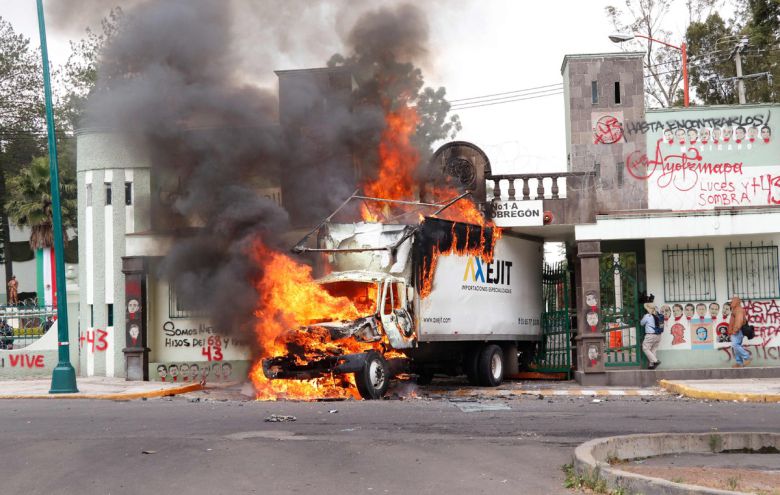 멕시코에서 11년 전 대학생 43명 실종 사건과 관련해 국가기관 책임자 처벌을 요구하는 대규모 시위가 열려 멕시코 군부대가 습격받았다.