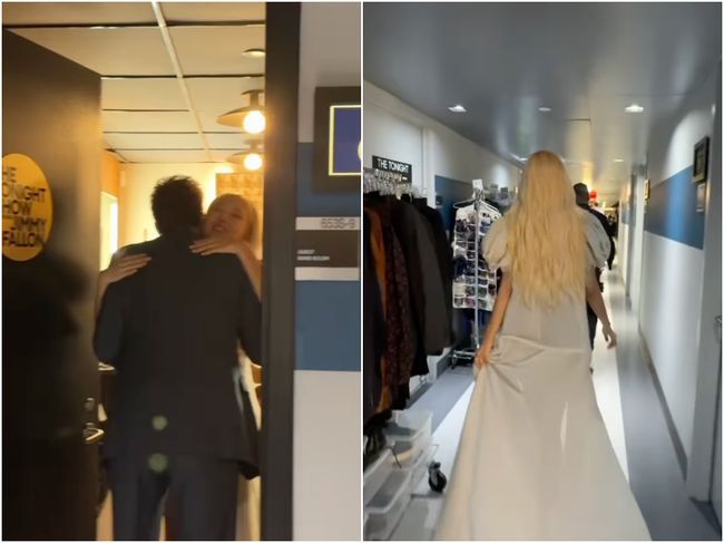 특히 대기실에서 편안히 앉아 있는 모습부터 무대 뒤에서 지미 팰런과 포옹하는 장면, 그리고 긴 드레스를 살짝 들어 올리고 복도를 걸어가는 모습까지, 세계적인 스타다운 아우라가 물씬 풍겼다.