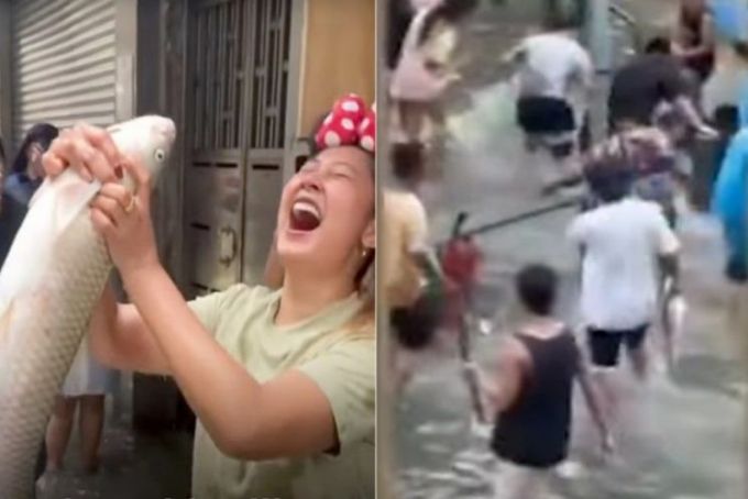 도시가 물바다로 변하자 주민들은 거리로 나와 '물고기잡이'에 나섰다. SNS(소셜미디어)에 공유된 영상을 보면 주민들이 맨손으로 파도에 휩쓸려 들어온 물고기들을 잡고 있다. 한 남성은 직접 낚은 물고기를 머리 위로 들어 올리며 환호했다.