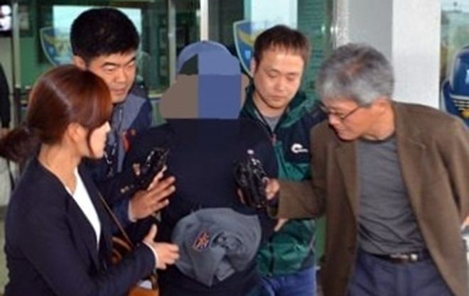 2015년 10월 경찰에 검거된 신 모 씨가 경찰서를 나오며 기자들 질문을 받고 있다. 연합뉴스