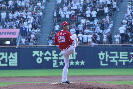SSG 선발 투수 김광현은 5회말을 실점 없이 막고 시즌 10승 요건을 충족했다.