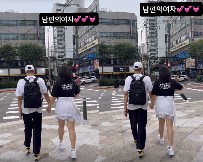 27일 장영란은 "남편의 여자♥"라며 다정하게 손을 잡고 걷는 두 사람을 뒤에서 포착했다.