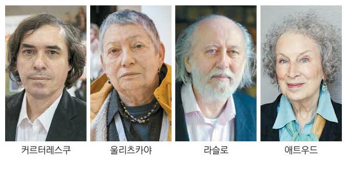 2위는 카리브 출신 미국인으로 탈식민문학의 거장인 저메이카 킨케이드, 3위는 8시간짜리 영화 '사탄 탱고'의 원작자인 헝가리 묵시록 문학의 마에스트로 크러스너호르커이 라슬로, 4위는 러시아 정부의 억압에 저항한 상징적 존재인 류드밀라 울리츠카야, 5위는 시리아 시인 아도니스였다.