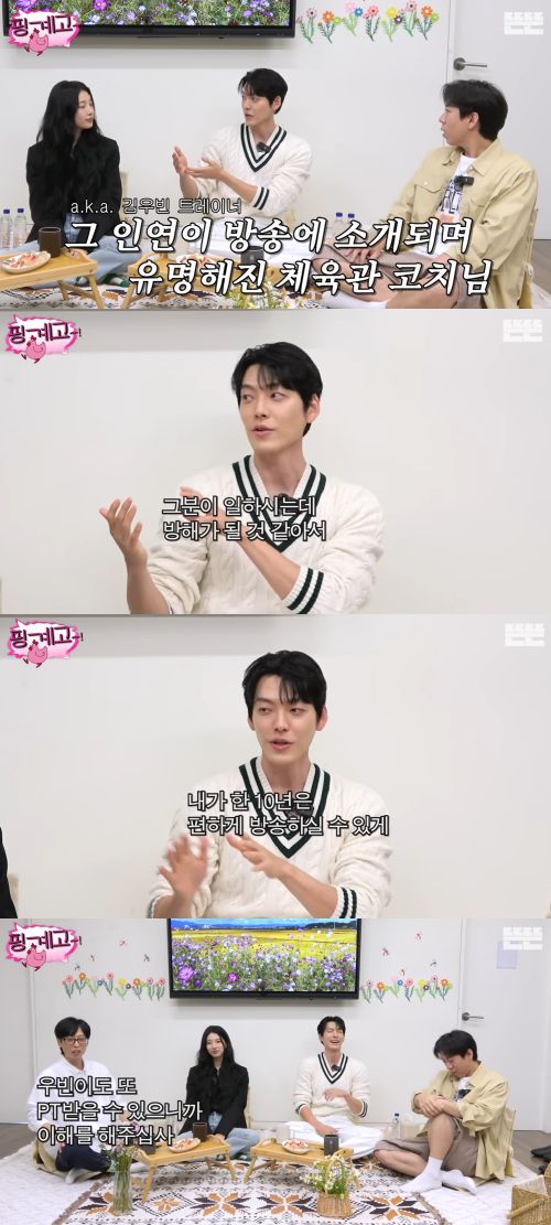 양세찬이 "본인 몸이 어디가 먹고 이런 걸 아는 구나"라고 감탄하자 김우빈은 "그거보단 제가 어릴 때 도움받았던 코치님이 계신데 '김우빈 트레이너'로 방송에 나오셨다. 제가 다른 분한테 도움을 받으면 그분이 일하시는데 방해가 될 것 같더라"라고 전했다.