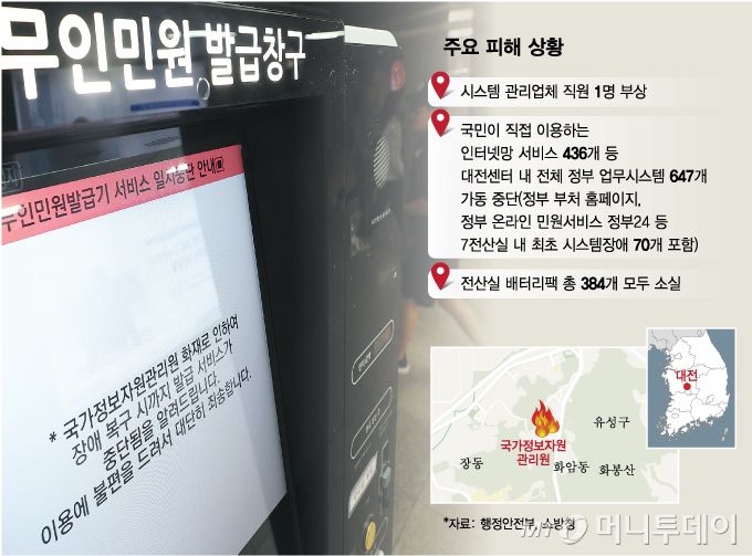 정부는 복구와 함께 대체서비스 제공에 나섰다. 그럼에도 전산망 정상화까지는 상당한 시간이 걸릴 것으로 보여 시민들의 불편도 이어질 전망이다. 서울에 거주하는 30대 직장인 한모씨는 "나라 시스템이 한순간에 혼란에 빠질 수 있다니 무섭다"며 "평일 업무시간에 이런 일이 벌어졌다면 지금보다 더 일이 커졌을 것"이라고 했다.