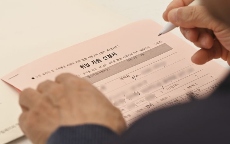 일자리 지원센터를 찾은 어르신들이 취업지원 신청서를 작성하고 있다. 뉴시스 |