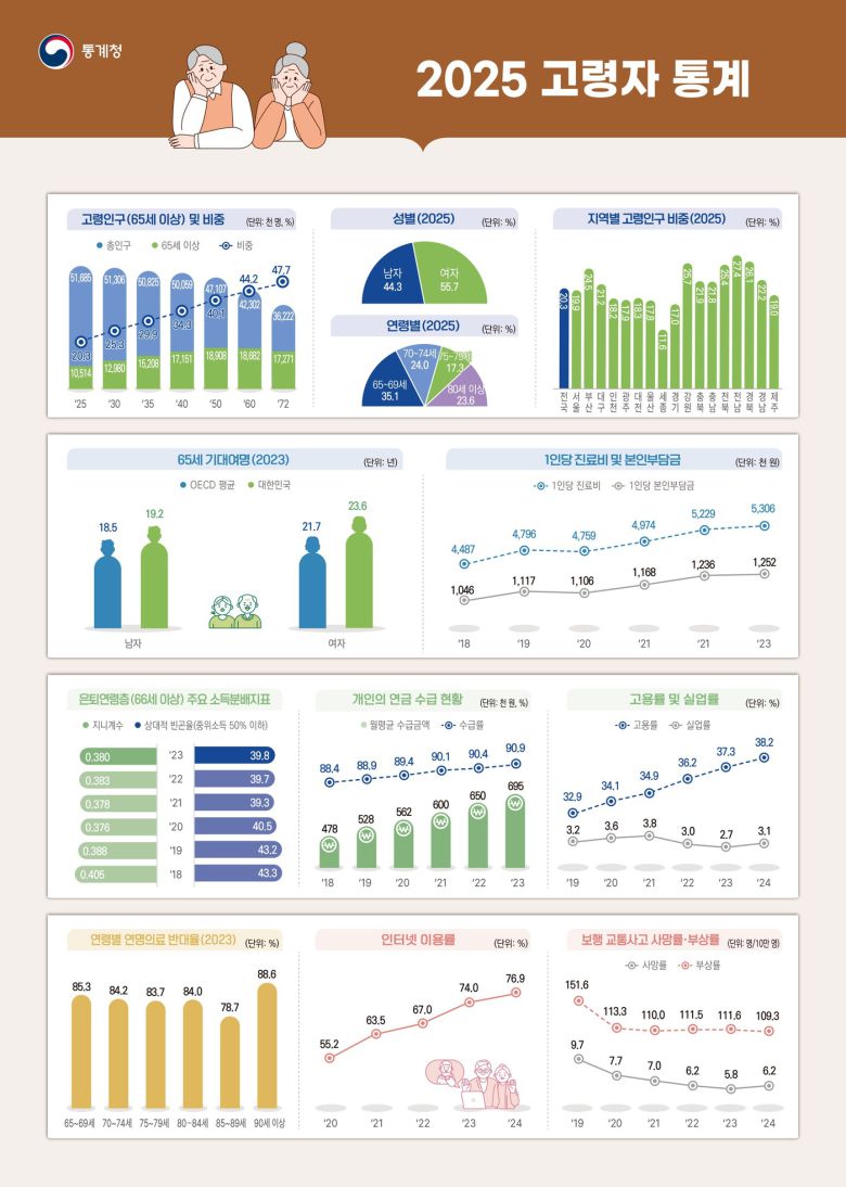 65세 이상 인구 첫 1000만명 돌파…50년 후 韓 인구 절반이 고령자