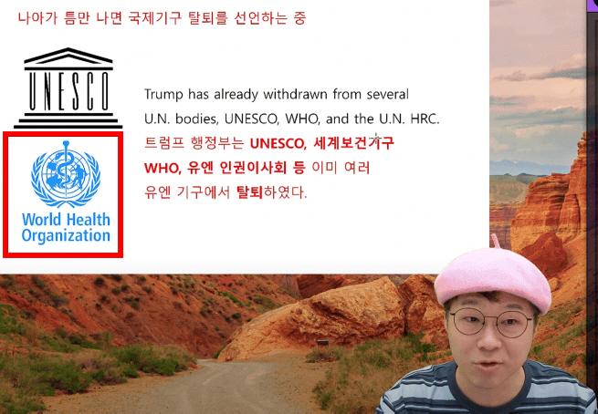 슈카는 지난 28일 유튜브 채널 '슈카월드' 라이브 방송에서 미국 트럼프 행정부의 국제기구 탈퇴 사례를 다루던 중 유네스코와 WHO 로고를 화면에 띄웠다.