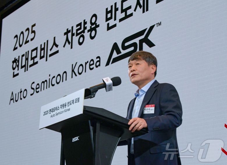 이규석 현대모비스 사장이 29일 경기 성남시 더블트리 바이 힐튼 서울 판교 호텔에서 열린 제1회 현대모비스 차량용 반도체 포럼 'Auto Semicon Korea'에서 환영사를 하고 있다(현대모비스 제공). ⓒ News1 박주평 기자