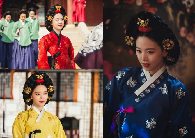 -화려한 색감의 한복과 유난한 머리장식들, 붉은 기의 도화 메이크업으로 말을 하지 않고 있어도 어떤 붉은 기운이 뿜어져 나오는 인물이 될 수 있었습니다. 감독님께서 목주는 확실하게 눈빛이 나빴으면 좋겠다는 코멘트를 주셔서 마카롱을 맛있게 먹는 잠시의 순간 말고는, 내내 나쁘고 위험한 여인의 외적인 분위기를 지속적으로 내려고 노력했습니다.