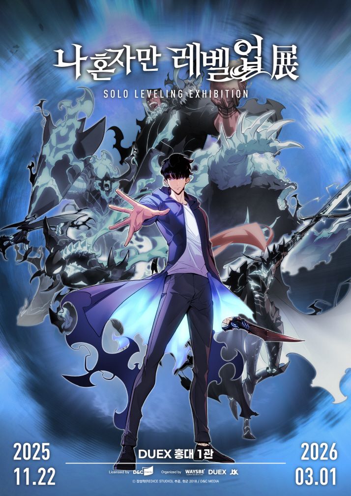 전시기획사 웨이즈비에 따르면 나 혼자만 레벨업 전시가 오는 11월22일부터 내년 3월1일까지 덕스 홍대 1관에서 개최한다.