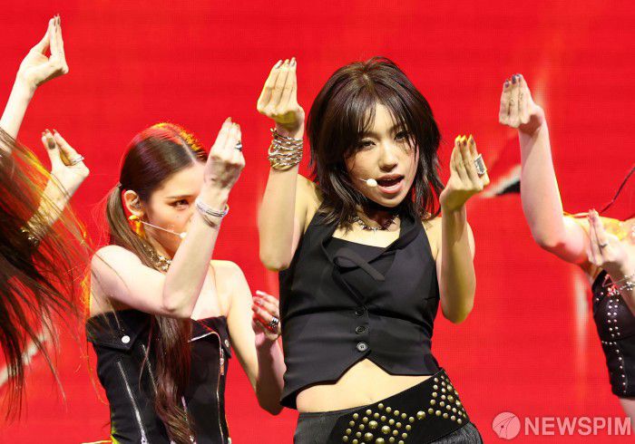 [서울=뉴스핌] 최지환 기자 = 걸그룹 이즈나(izna) 멤버들이 30일 오후 서울 광진구 예스24 라이브홀에서 열린 이즈나 미니 2집 발매 기념 미디어 쇼케이스에서 타이틀곡 '맘마미아' 무대를 선보이고 있다. 이즈나의 두번째 미니앨범 '낫 저스트 프리티'(Not Just Pretty)는 세상의 시선에 흔들리지 않고 스스로의 직감을 믿으며 ‘나는 내가 될 거야’라고 당당히 선언하는 이들의 이야기를 담은 타이틀곡 '맘마미아'를 비롯해 총 5개의 트랙을 수록했다. 2025.09.30 choipix16@newspim.com |