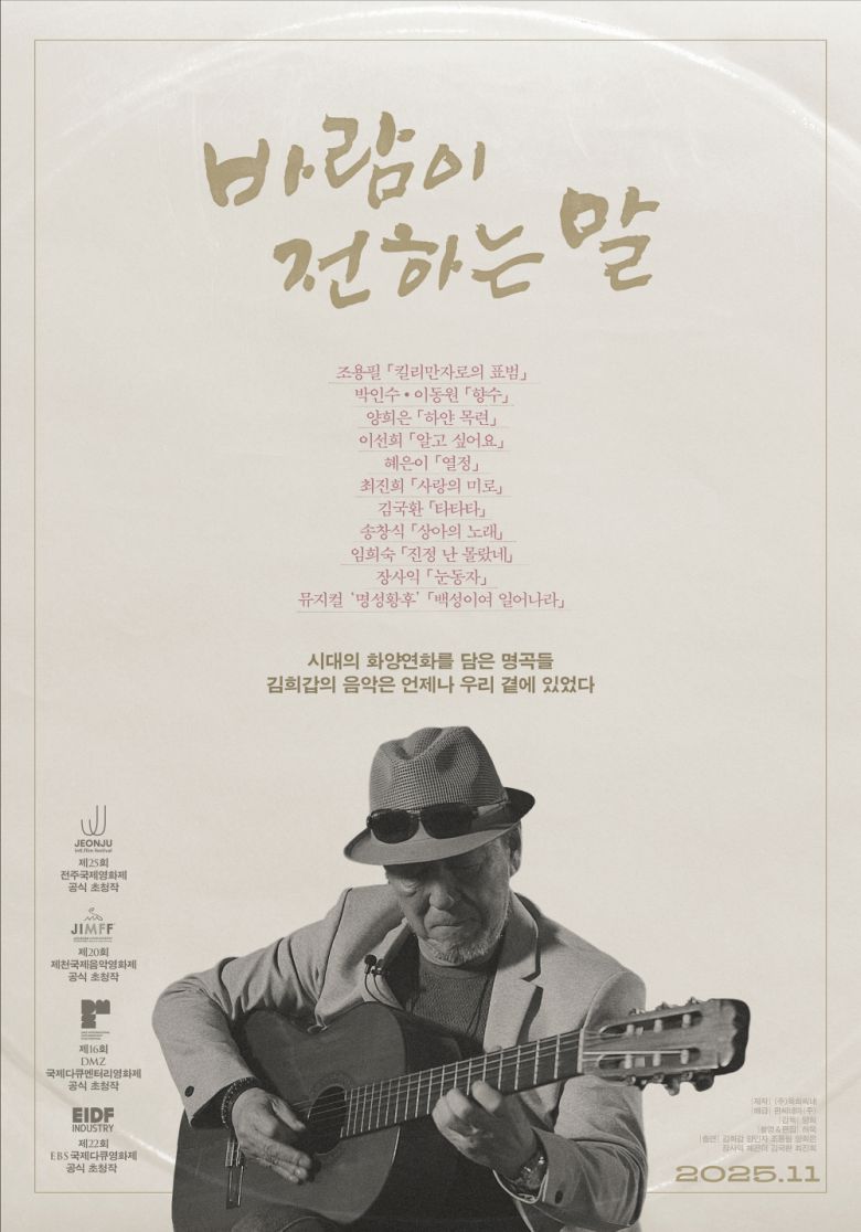 [SBS연예뉴스 | 김지혜 기자] 대한민국 대중가요 역사상 가장 중요한 전설적인 인물이자 국민 애창곡 3,000여 곡을 만든 국민 작곡가 김희갑의 이야기를 다룬 뮤직 다큐멘터리 '바람이 전하는 말'이 오는 11월 개봉한다.