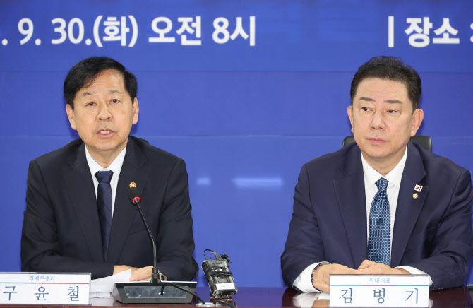 30일 서울 여의도 국회 의원회관에서 열린 경제형벌 민사책임 합리화TF 당정협의에서 구윤철 부총리 겸 기획재정부 장관이 발언하고 있다.(사진=연합뉴스) |