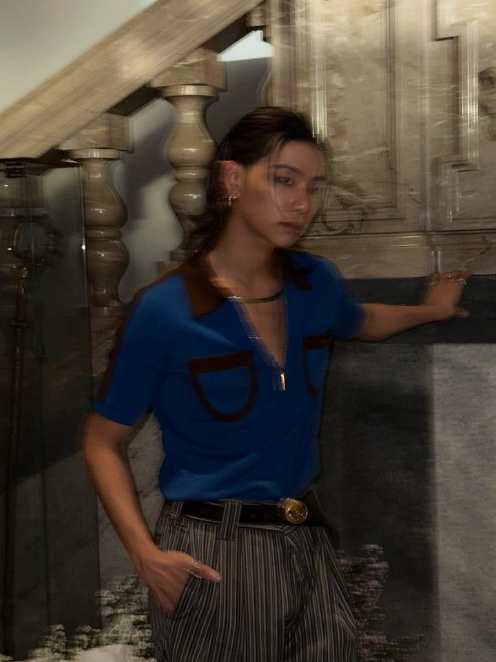 공개된 사진 속 타잔은 고급스러운 인테리어의 공간에서 포즈를 취하며, 독특한 블루 셔츠와 스트라이프 와이드 팬츠를 매치해 강렬한 패션 감각을 드러냈다.