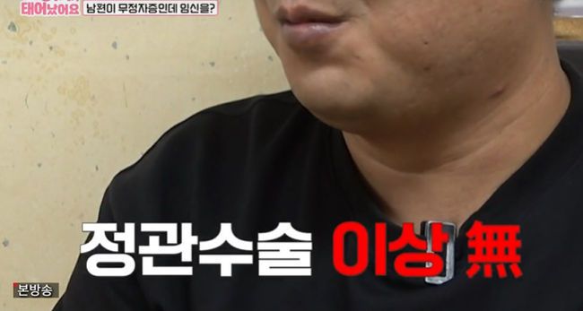 9월 30일 방송된 TV CHOSUN ‘우리 아기가 또 태어났어요('이하 우아기')에서는 무정자증인데 임신한 부부가 출연했다.